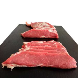 El bistec de vedella s’obté de les peces de la cuixa o l’espatlla que queden tendres a la planxa. De la cuixa hi ha el crostó, cap de mort i culatí i de l’espatlla hi ha el filet de pobre, la culata, la llata i el tall rodó.