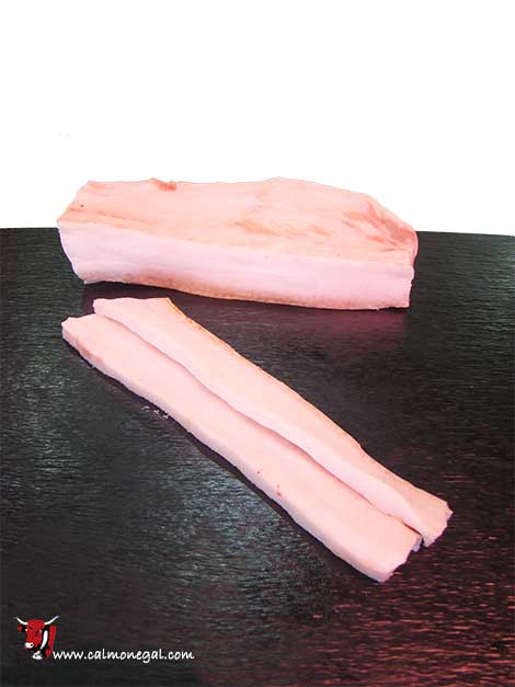 La cansalada grassa és la que consta de cotna i greix, ideal per fer fregida a la paella i posar d’acompanyament a verdures, llegums, etc.